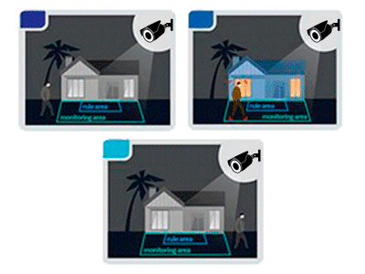 Con su mecanismo inteligente de luz dual, la cámara enciende automáticamente la luz blanca cuando la función Protección perimetral/SMD Plus de AI XVR detecta un objetivo en el área reglada para capturar imágenes claras y vívidas. Cuando el objetivo abandona el área reglamentada, la cámara cambia automáticamente de la luz blanca a la luz IR para reducir significativamente la contaminación lumínica.